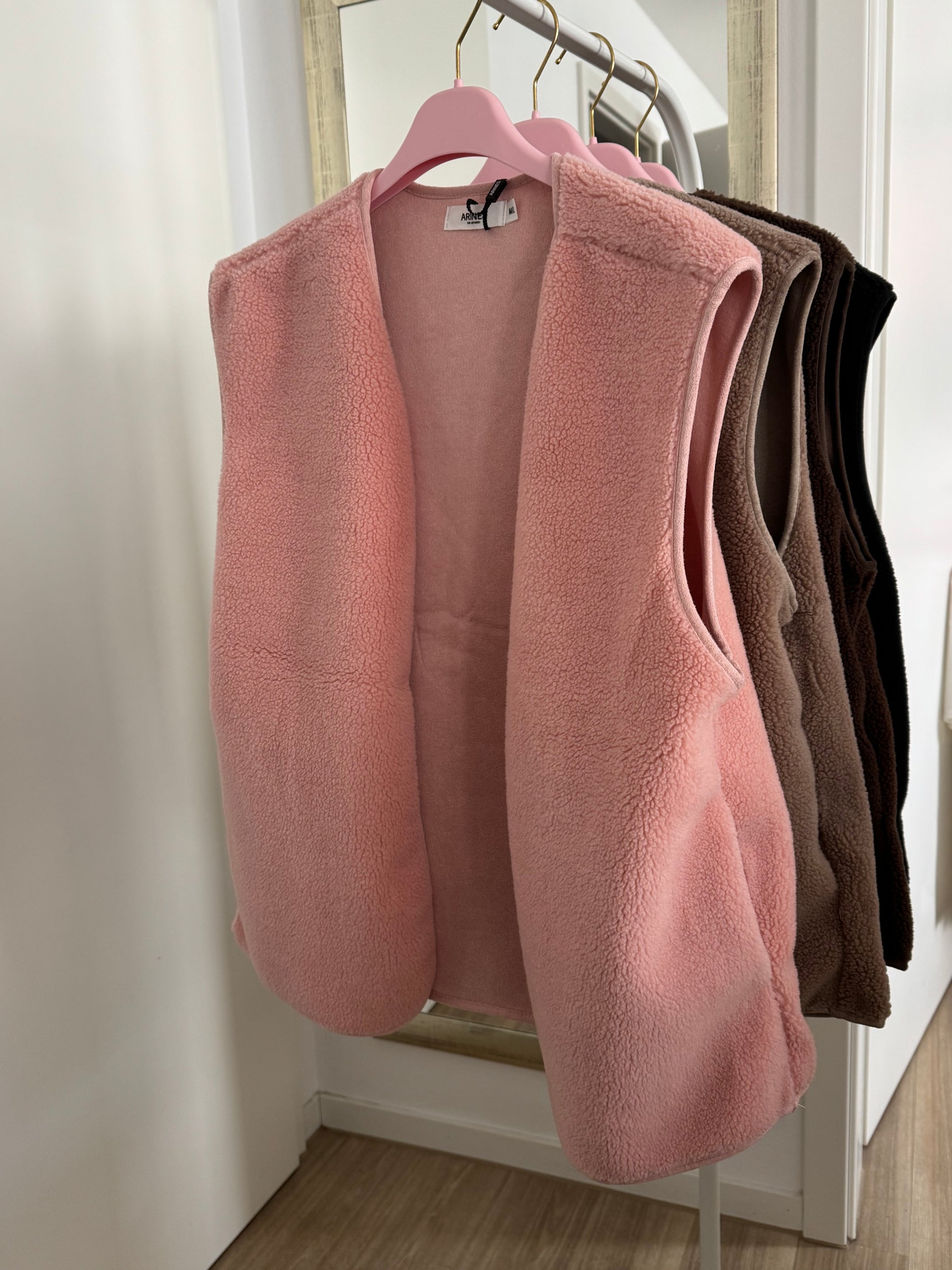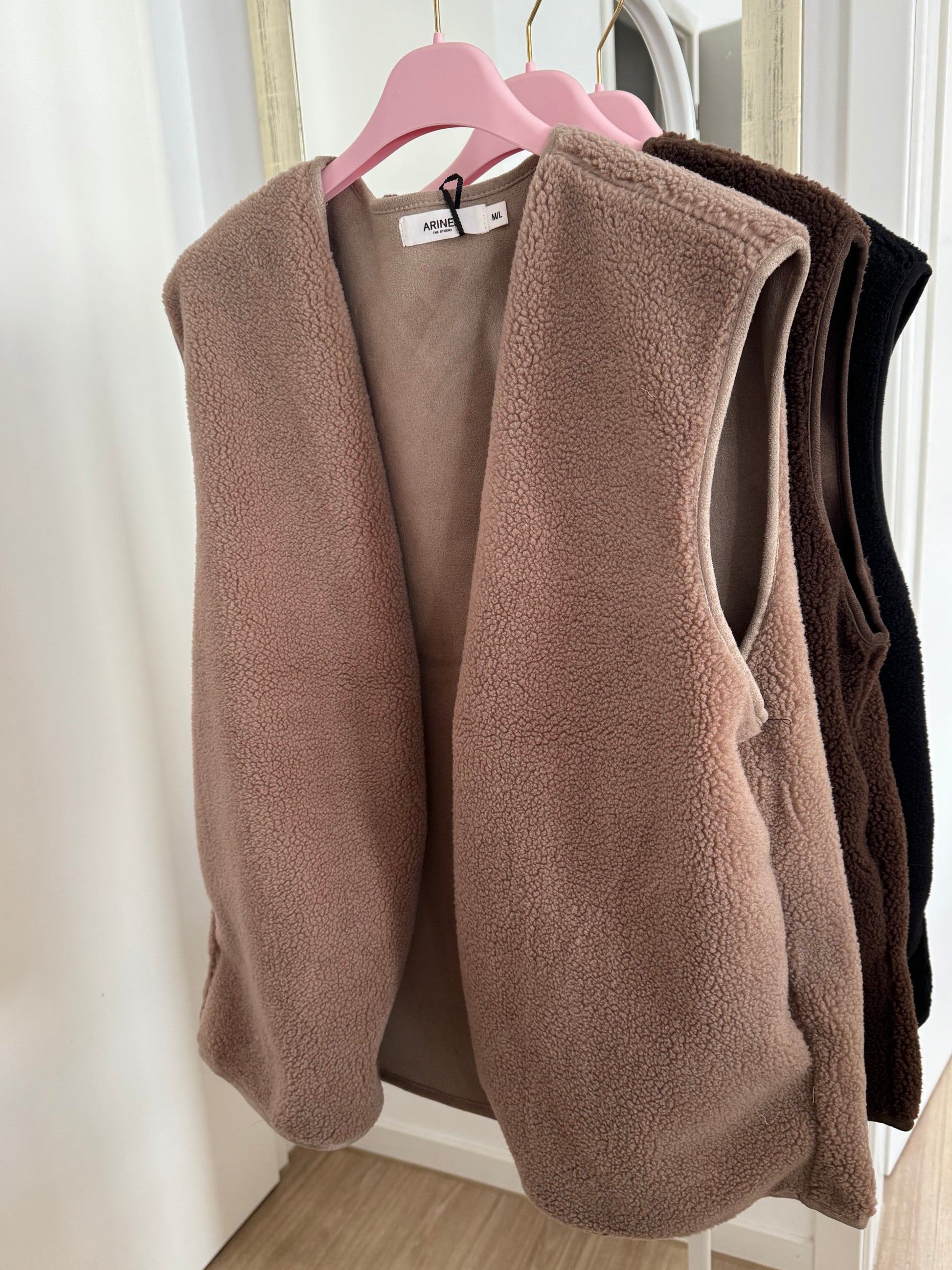 Die Teddyfell-Weste „Nuala“ ist dein unkompliziertes Lieblingsstück für den Übergang – kuschelig weich, aber angenehm leicht im Material.