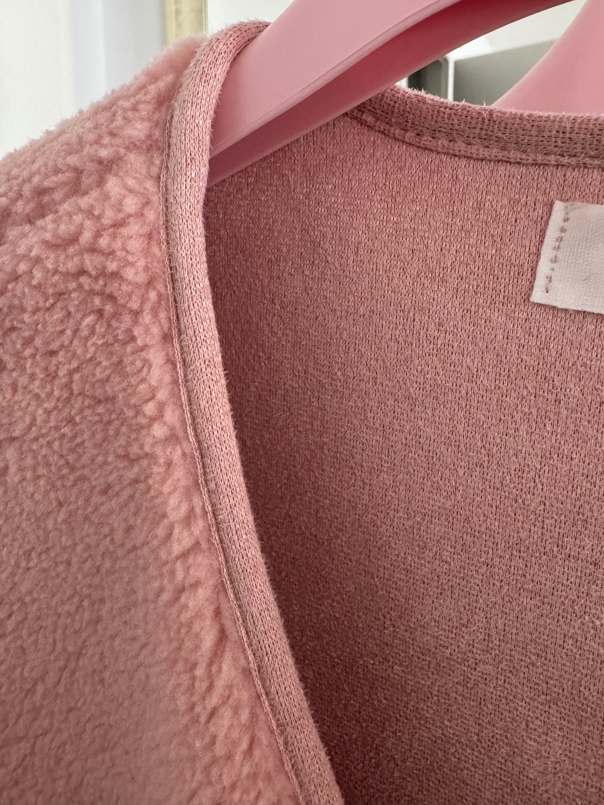 Außen sorgt das feine Teddyfell für den gemütlichen Look, innen überrascht eine wildlederähnliche Oberfläche mit hochwertiger Optik.